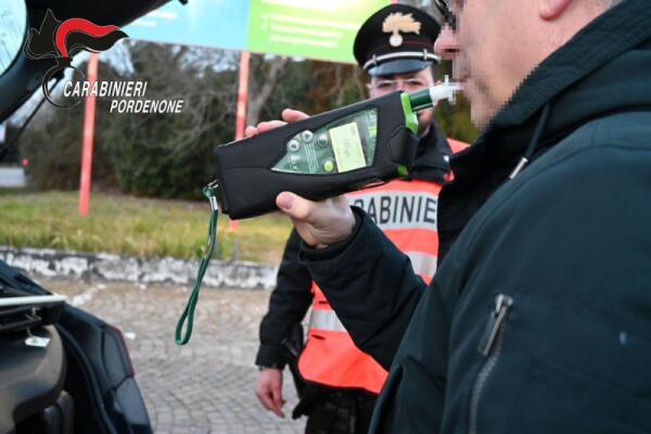 Controlli dei Carabinieri nel Pordenonese: dieci denunciati in 20 giorni per guida in stato di ebbrezza, tre incidenti con feriti.