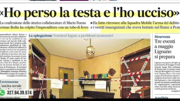 Omicidio del patron di TelePordenone: Loriano Bedin ha confessato il delitto di Mario Ruoso. Movente economico.