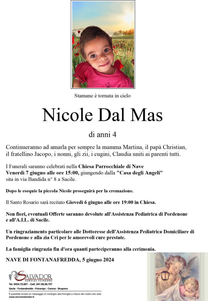 NAVE, FONTANAFREDDA (PN) - La tragica perdita di Nicole Dal Mas ha scosso profondamente l'intera comunità di Nave di Fontanafredda. A soli quattro anni, Nicole è stata sconfitta da una malattia rara e...