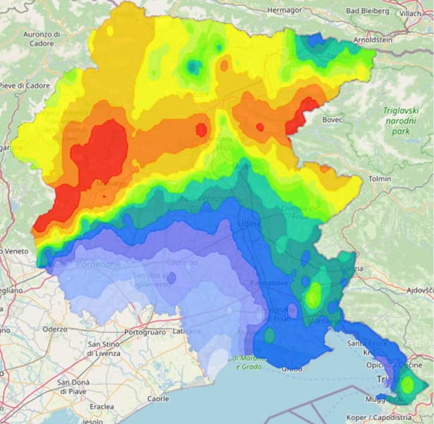 - Per il Bacino del Tagliamento: l’idrometro di Venzone alle ore 03:15 ha raggiunto il valore di picco di 2,63 m, superiore al livello di guardia di 1,90 m, alle ore 6:00 misurava 1,81 m in calo ed è rientrato sotto il livello di guardia.