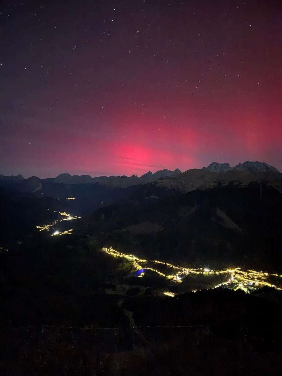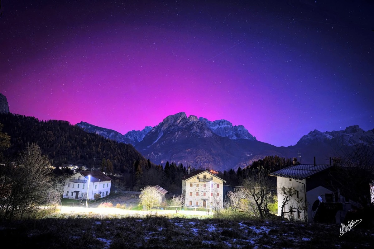 Le foto arrivate in redazione raccontano archi luminosi e veli colorati all’orizzonte anche in diverse località del Veneto e del Friuli Venezia Giulia: bagliori rosati, striature fucsia, talvolta con sottili colonne che si alzavano dal profilo dei rilievi. I contributi dei lettori descrivono un fenomeno breve, ma intenso, visibile soprattutto dalle aree più buie e lontane dall’inquinamento luminoso.