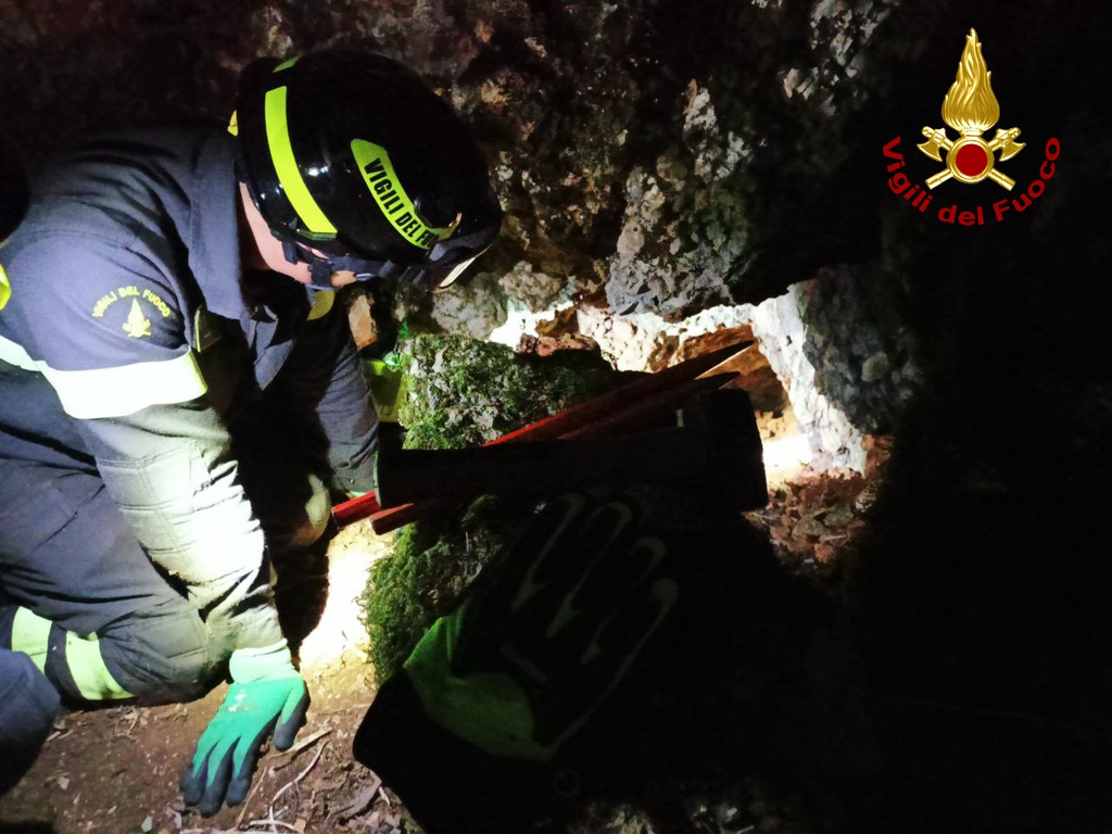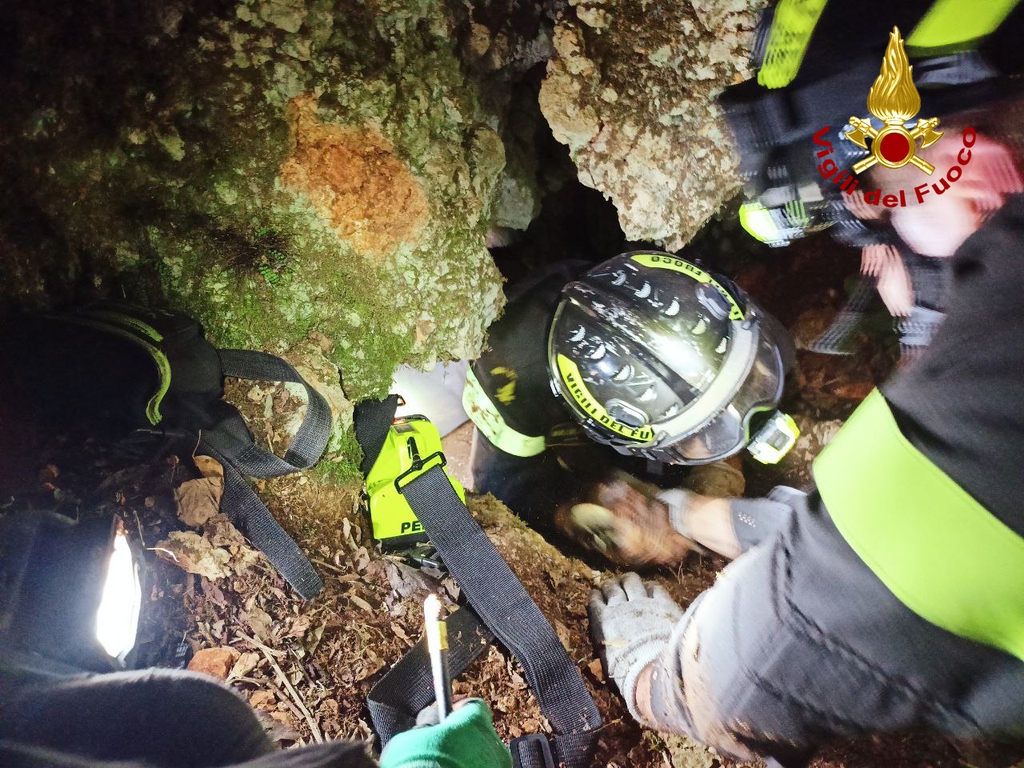 L'animale, durante una battuta di caccia, si era infilato in uno stretto e lungo condotto orizzontale scavato nella terra, probabilmente la tana di qualche animale selvatico, senza più riuscire ad uscirne.