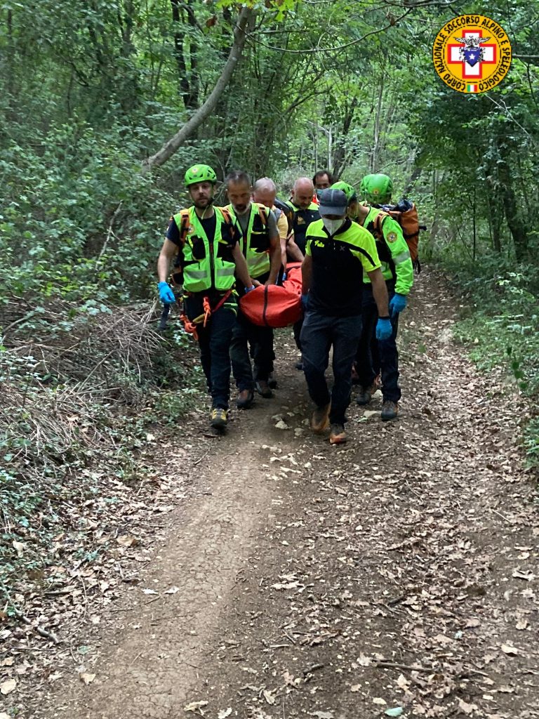 Stabilizzato e imbarellato con l'aiuto del medico del Soccorso Alpino è stato trasportato in barella per 500 metri e consegnato all'ambulanza.