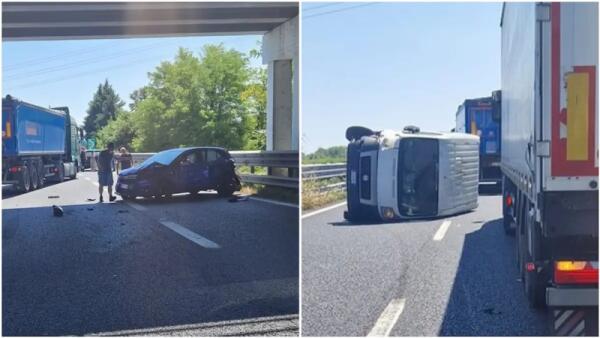 Incidente in A28, furgone si ribalta dopo lo scontro con un'auto: traffico in tilt
