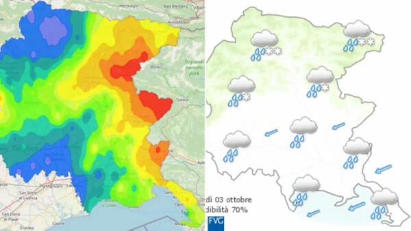 Maltempo, piogge intense e venti forti in Friuli Venezia Giulia. Nevicate in arrivo