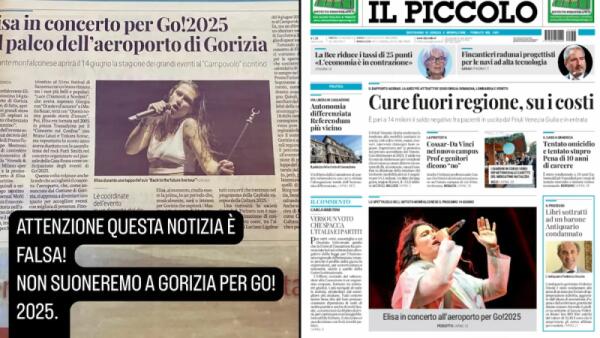 Il quotidiano annuncia il concerto di Elisa a Go2025, ma per la cantante è una "Fake News"