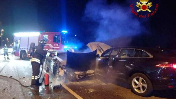Sacile. Scontro frontale tra 3 auto, poi scoppia l'incendio: 4 feriti