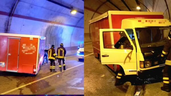 Barcis, furgone sbanda e finisce contro la parete della galleria