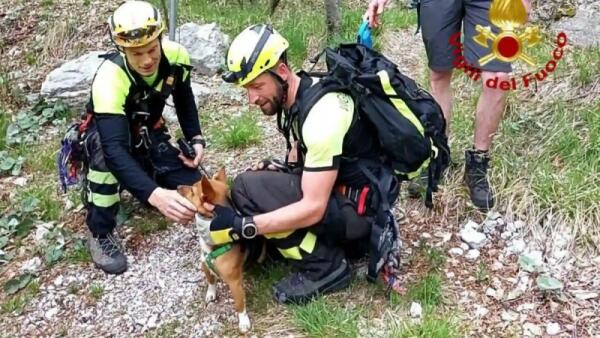 "Turbo" scivola in una forra e rimane bloccato: salvato dai pomperi