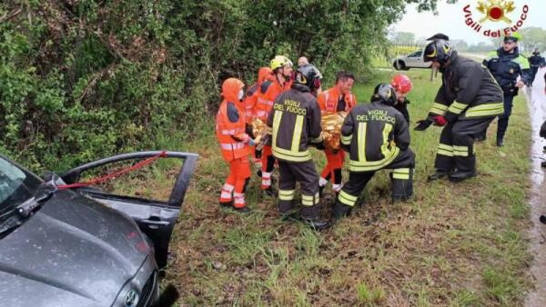 Sbanda e percorre 50 metri nel fossato prima di fermarsi contro un muretto