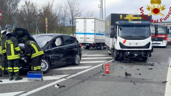 Scontro frontale tra auto e camion sulla bretella di raccordo dell'A28