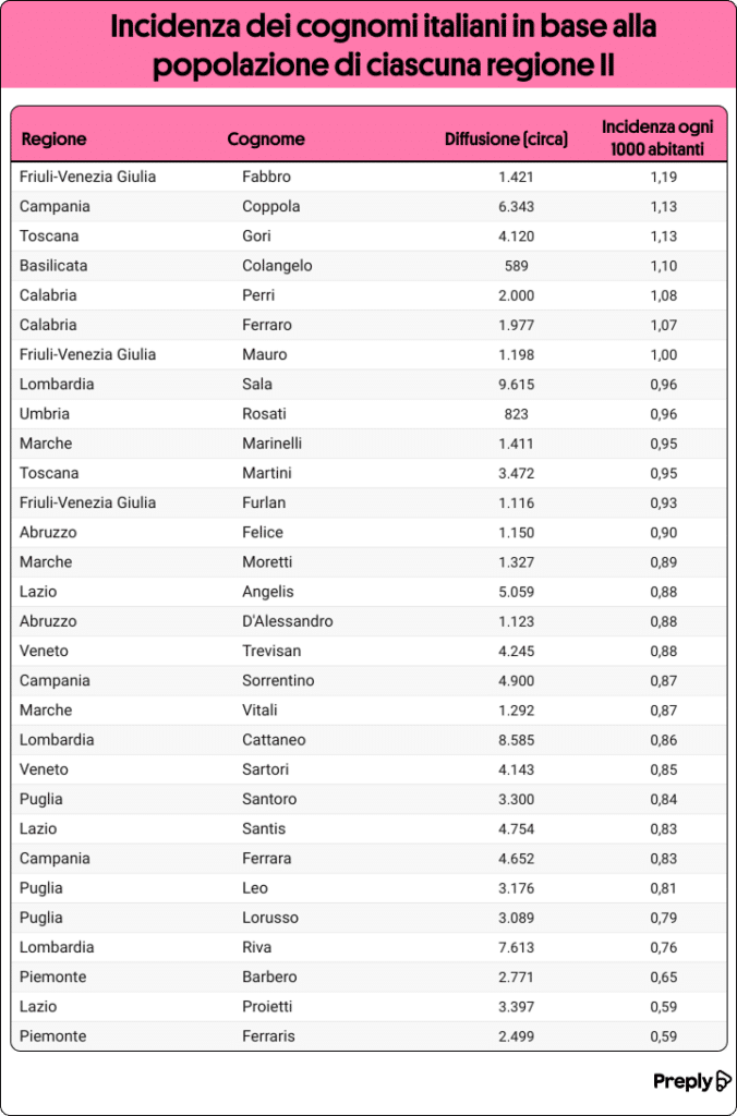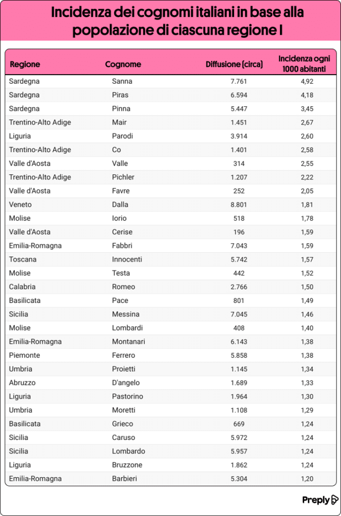 Se desideri scoprire tutti i dettagli sullo studio dei cognomi più diffusi in Italia e la loro incidenza per regione, puoi consultare il sito completo di Preply.