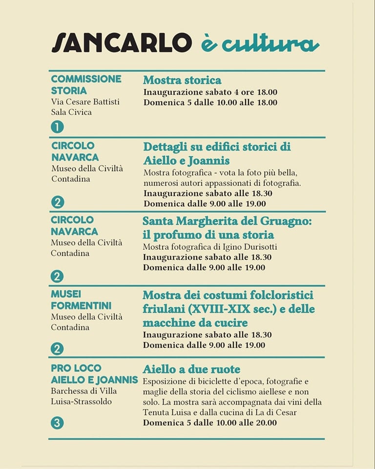 La mostra – visitabile fino al 18 novembre, dal lunedì al venerdì, dalle 10.00-13.00 e 15.00-18.00 e durante gli eventi del Teatro – propone fotografie storiche provenienti dal Fondo Carli Innocenti del CRAF Centro di Ricerca e Archiviazione della Fotografia di Spilimbergo e dalla Fototeca del Centro Isontino di Ricerca e Documentazione Storica e Sociale Leopoldo Gasparini di Gradisca d’Isonzo e fotografie contemporanee degli autori Ermes Cabas, Massimo Gargaloni, Lucio Nanut, Mario Pierro e Flavio Snidero dell’Associazione Obbiettivo Immagine.