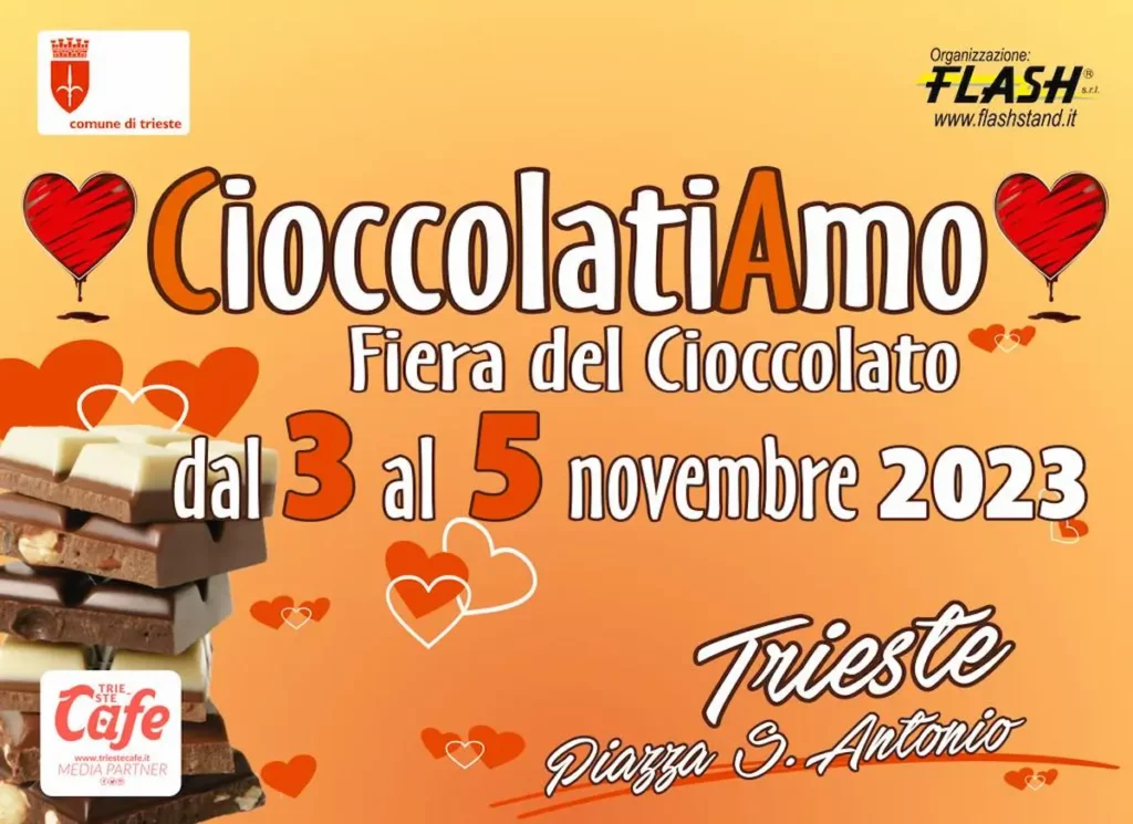 L’appuntamento, organizzato da Flash Srl., si terrà dal 3 al 5 novembre 2023. In una tensostruttura riscaldata, aperta dalle 9 alle 21 anche in caso di maltempo con ingresso libero, si potrà assaggiare, ammirare e acquistare ancora una volta tutto quanto ruota attorno al dolcissimo mondo del cioccolato.