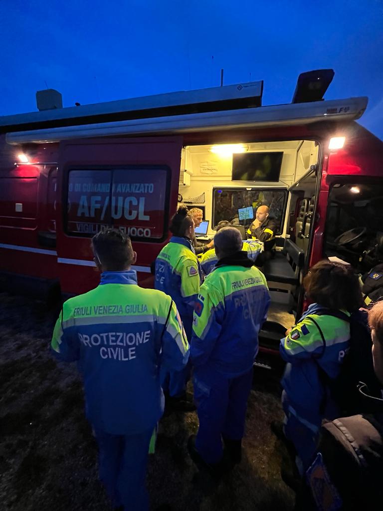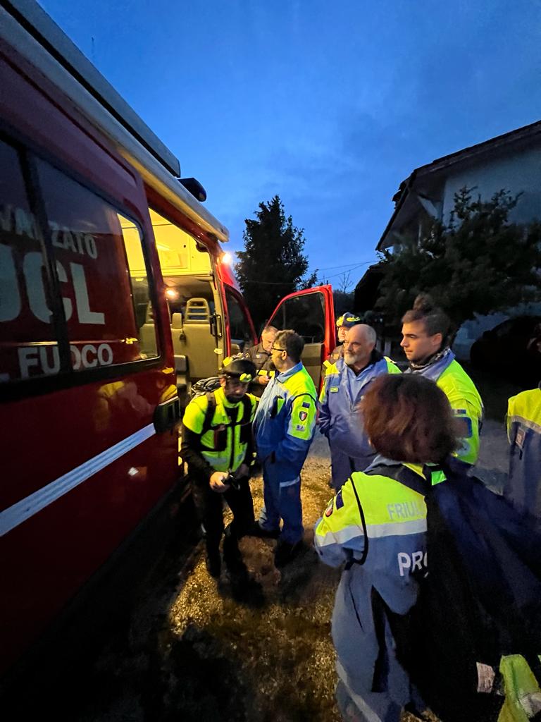 A supporto dei Vigili del Fuoco e delle forze dell'ordine, operano una *decina di unità cinofile delle associazioni di Protezione civile* del Friuli Venezia Giulia e una *quindicina di volontari di Protezione civile del Distretto Pedemontana Ovest* che comprende le squadre comunali di Caneva, Fontanafredda, Roveredo in Piano, San Quirino, Budoia, Aviano, Polcenigo; tutti i volontari di Pc sono tutti attivati dagli operatori della Sala operativa regionale della protezione civile del Friuli Venezia Giulia (Sor) e operano a supporto per quanto di competenza.
