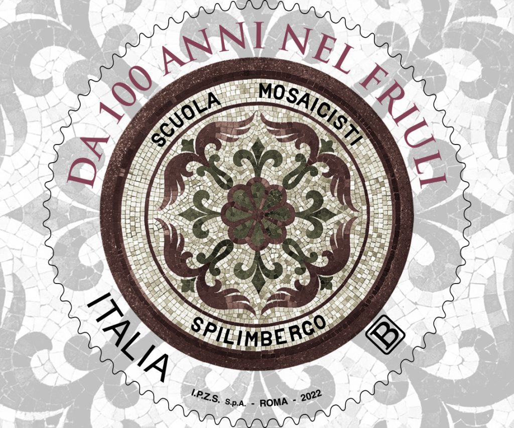 Poste Italiane comunica che oggi 22 aprile 2022 viene emesso dal Ministero dello Sviluppo Economico un francobollo ordinario appartenente alla serie tematica “le Eccellenze del sapere” dedicato alla Scuola Mosaicisti del Friuli, nel centenario della fondazione, al valore della tariffa B pari a 1,10€.