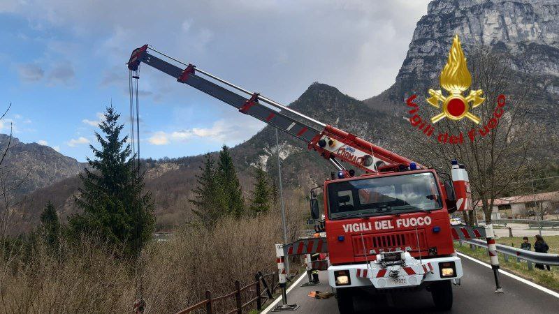 I Vigili del Fuoco di Maniago e di Pordenone sono intervenuti alle ore 15:40 di oggi sabato 16 aprile 2022 a Cellino di Sopra, in comune di Claut, per la fuoriuscita autonoma dalla strada di un'autovettura, che finiva nella scarpata.
