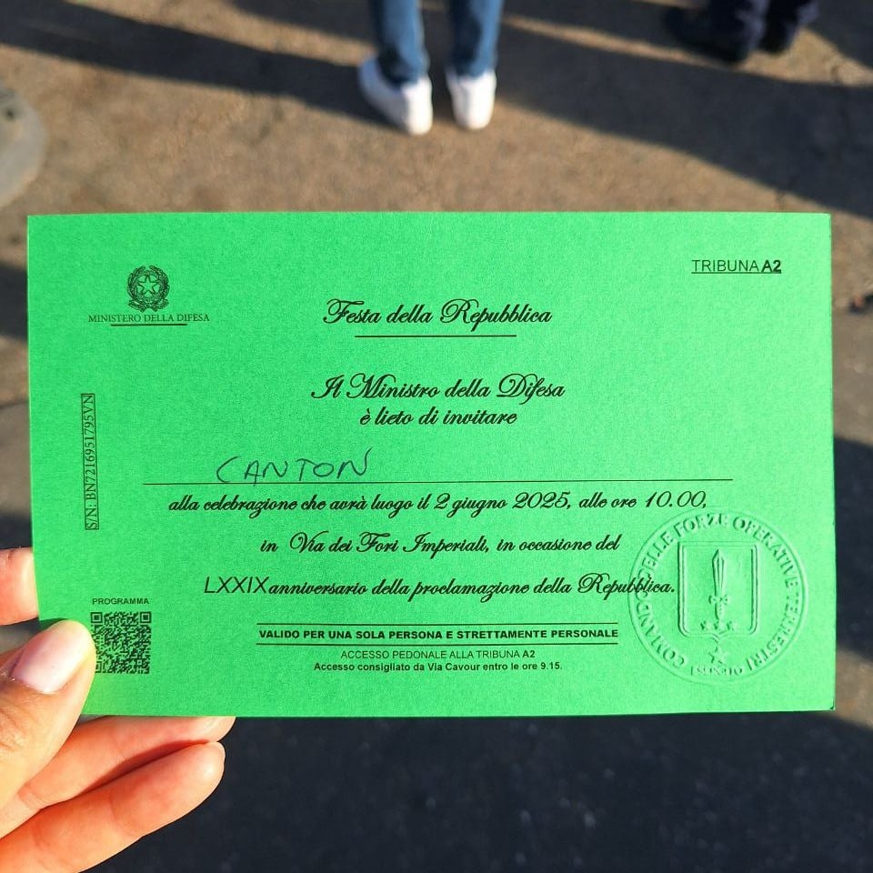 Il Sindaco di Fiume Veneto Jessica Canton tra gli invitati ufficiali alle celebrazioni del 2 giugno a Roma, accanto al Presidente Mattarella.