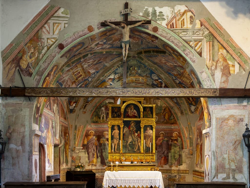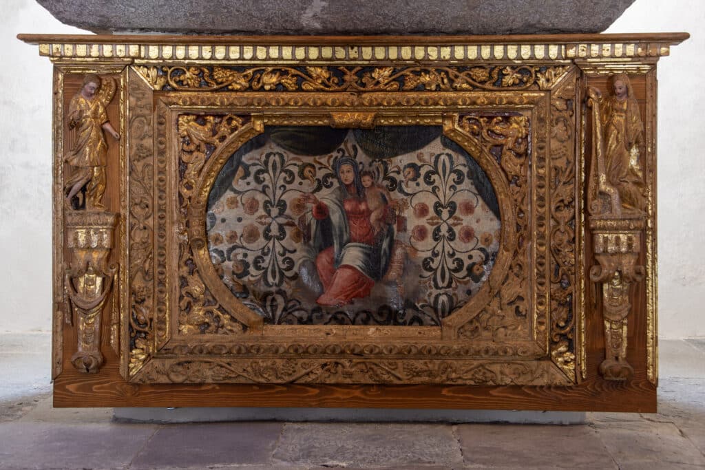 Il tour si chiude nel cuore della città dove si erge il Palazzo del Monte di Pietà, uno degli edifici più imponenti e maestosi della città. Al piano terra, al di sotto del porticato, incorniciata da un portale scultore, è incastonata la Cappella di Santa Maria del Monte di Pietà, prezioso scrigno custode degli affreschi di uno dei pittori più importanti di Udine: Giulio Quaglio, oriundo da Como. L’artista nel 1694 affrescò le pareti con episodi della Passione di Cristo e la volta con episodi della vita della Madonna. I visitatori potranno ammirare i suoi affreschi che decorano interamente le pareti e la volta della chiesetta di Santa Maria del Monte, un piccolo scrigno seicentesco.