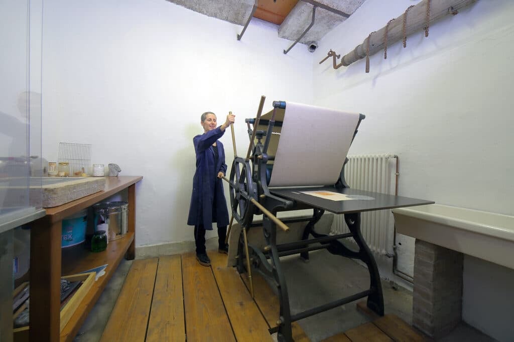 La Stamperia d’arte Albicocco (via Ermes di Colloredo) raccoglie storia, arte e cultura in uno dei più improbabili luoghi udinesi. Situata al piano terra dell'edificio che accoglie l'ex Cinema Capitol, passa inosservata alla frenesia della vita cittadina. L’attività nasce nel 1974 a Udine ad opera di Corrado Albicocco e Federico Santini ed è specializzata nella stampa d'arte calcografica, lavorando per numerosi artisti di fama internazionale, tra i quali Giuseppe Zigaina, Giuseppe Santomaso, Emilio Vedova, Jiri Kolar e Piero Dorazio. Nel 1994 Corrado Albicocco lascia la stamperia per aprire quella che diventa la Stamperia d'arte Albicocco, e nasce il suo sodalizio con numerosi artisti di una nuova generazione che apporteranno al mondo della grafica nuova linfa e vitalità. Si affacciano nella stamperia udinese autori delle officine milanesi e romane e molti altri artisti di fama internazionale.