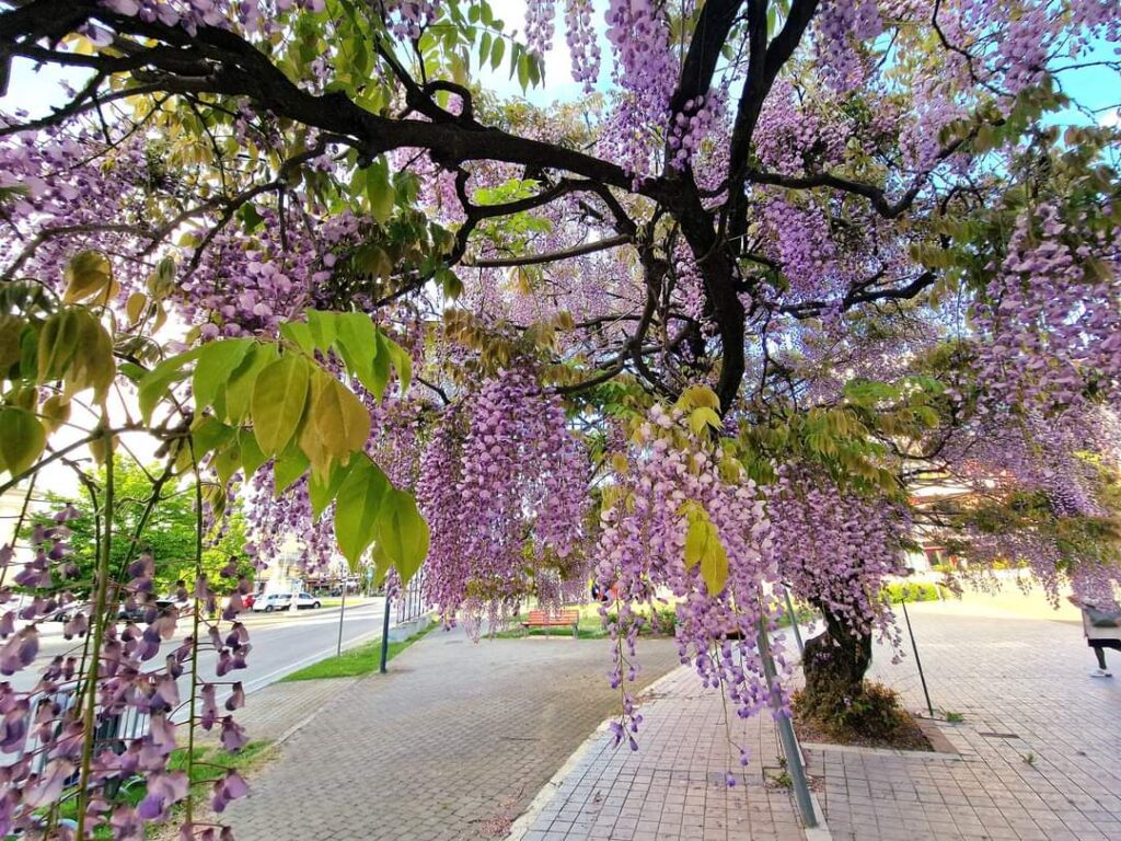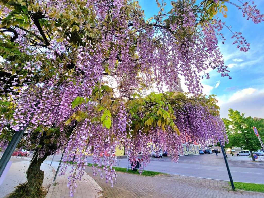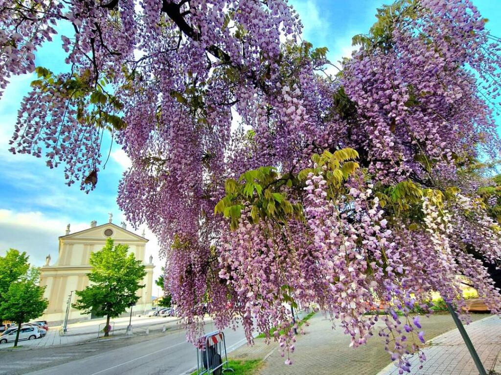 Il glicine da ammirare in una piazza del Friuli: che meraviglia