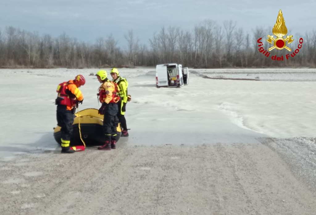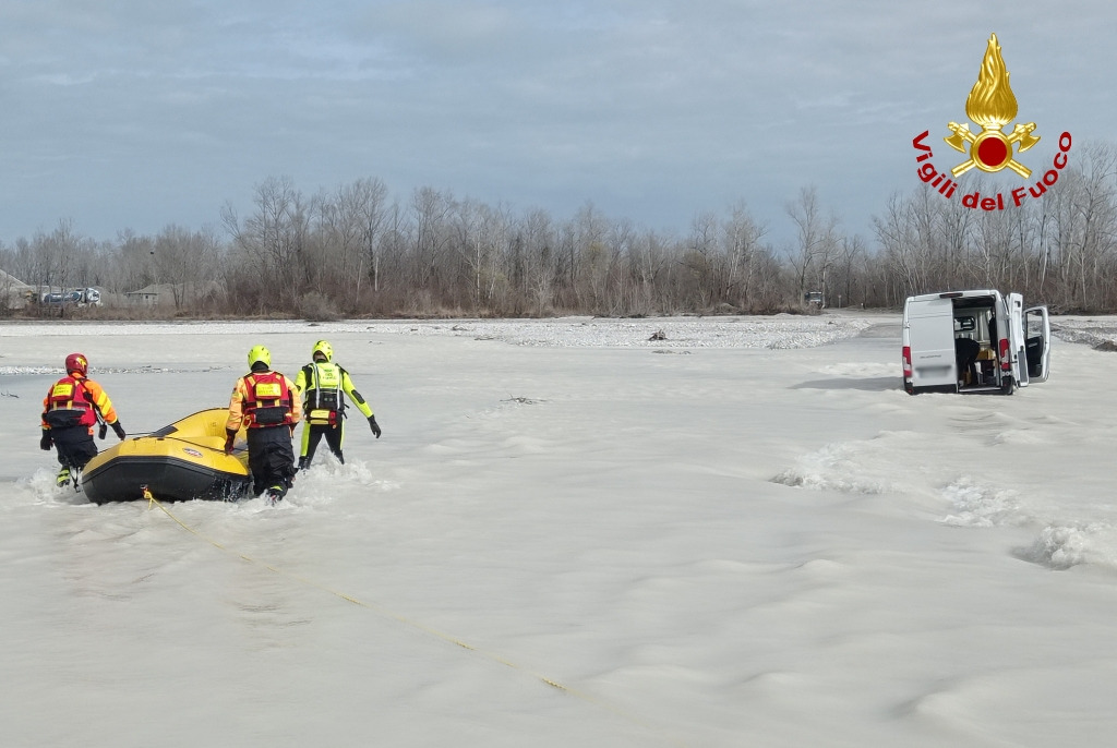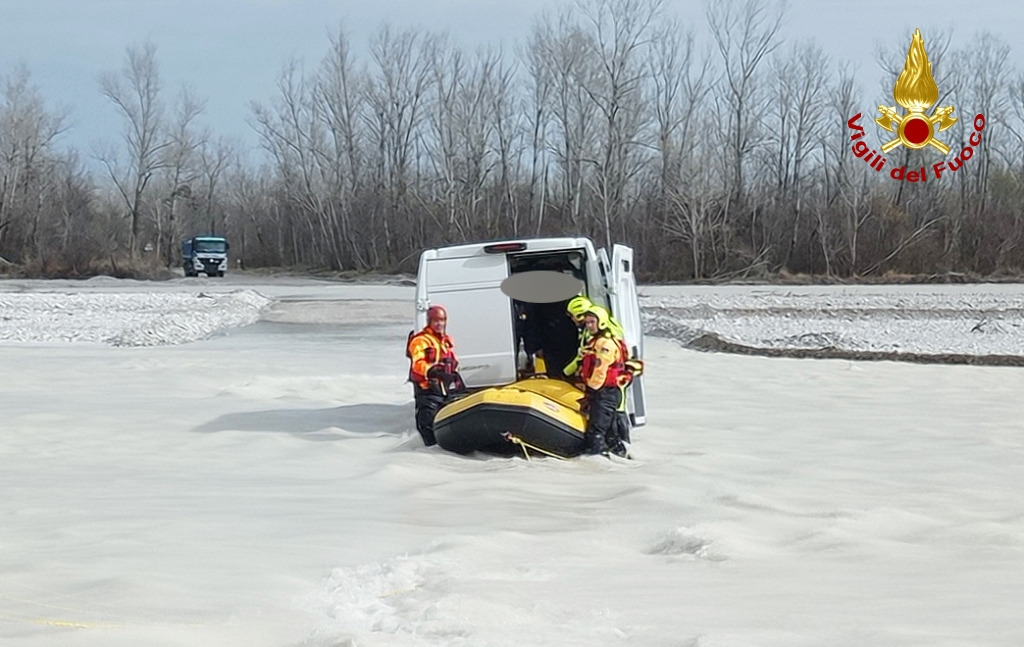 Alle ore 12.45 circa di oggi, 28 febbraio 2024, una squadra del comando dei Vigili del fuoco di Pordenone supportata dalla squadra SFA (Soccorritori Fluviali Alluvionali) dello stesso comando, è intervenuta per soccorrere due persone a bordo di un furgone bloccato nei guadi di Murlis nel comprensorio dei fiumi Cellina – Meduna nel territorio comunale di Cordenons (PN).