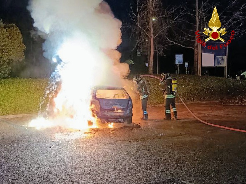 Auto già avvolta dalle fiamme all’arrivo dei soccorritori