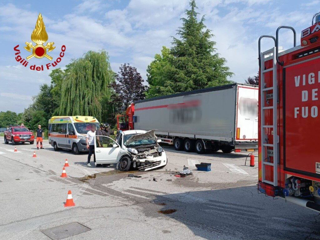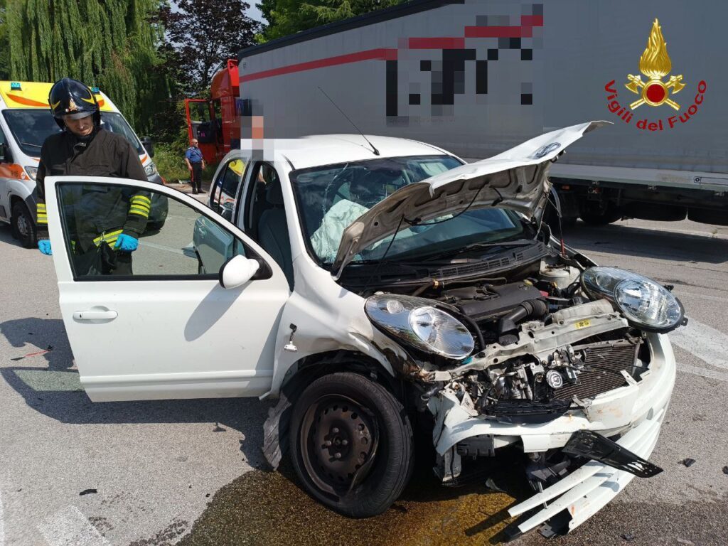 I Vigili del fuoco di Pordenone sono intervenuti alle 09.45 di oggi venerdì 23 giugno 2023 per uno scontro fronto/laterale tra un'auto e un camion, all'incrocio fra via Segaluzza con via Malignani a Pordenone.