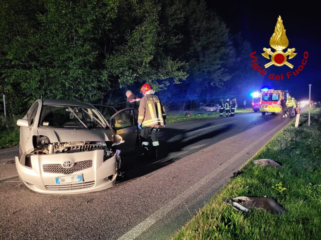 Due autovetture sono rimaste coinvolte nello scontro, con una delle auto che, dopo l’impatto, è uscita di strada finendo diversi metri oltre il ciglio stradale.