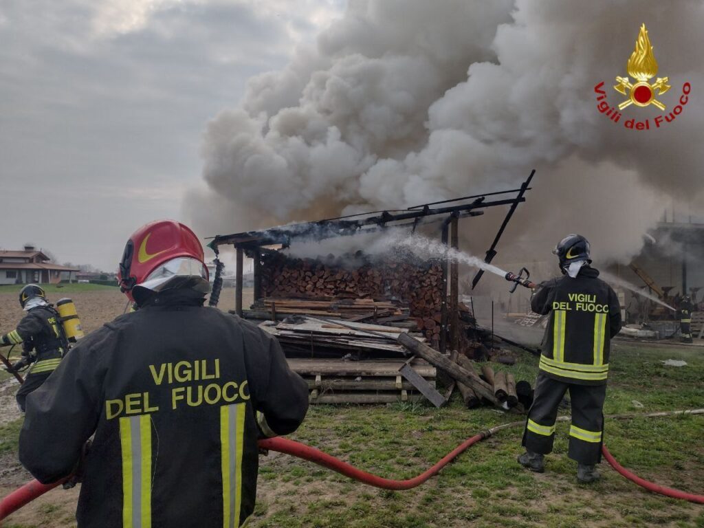 Con quattro mezzi (due autopompe e due autobotti) per un totale di 10 operatori) i Vigili del Fuoco sono riusciti a circoscrivere le fiamme alla sola legnaia, salvaguardando la struttura produttiva.