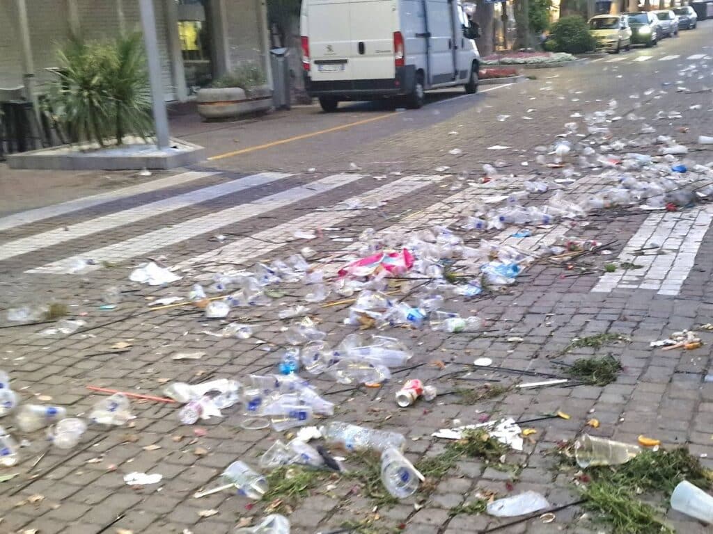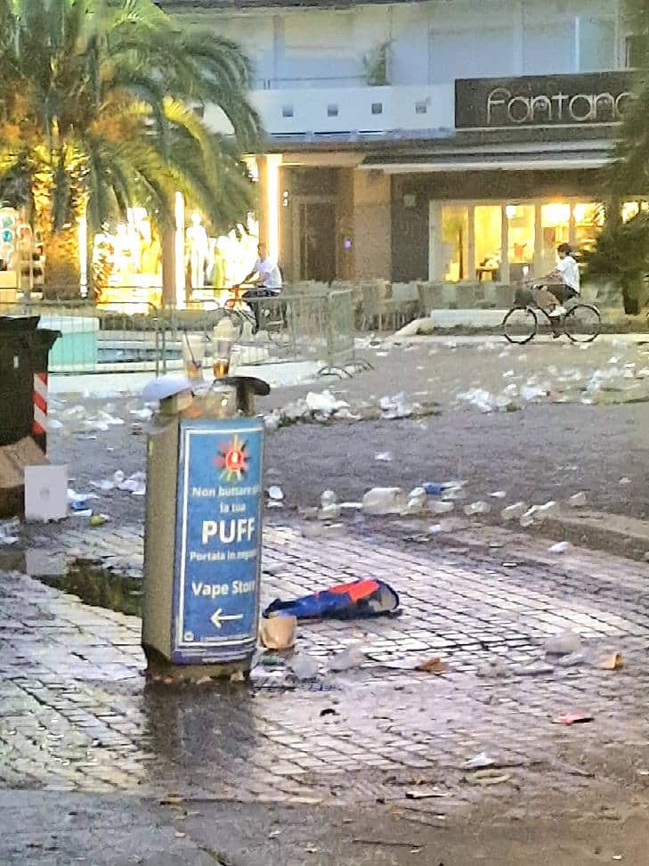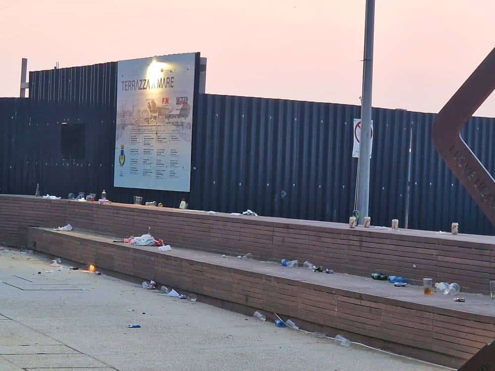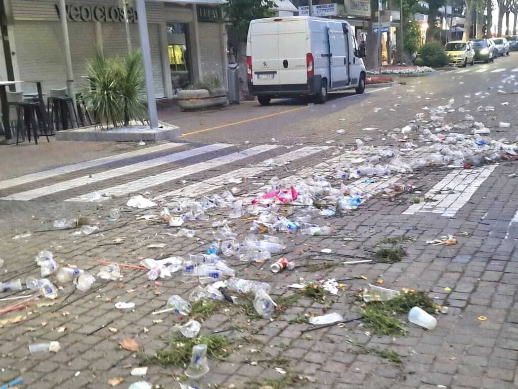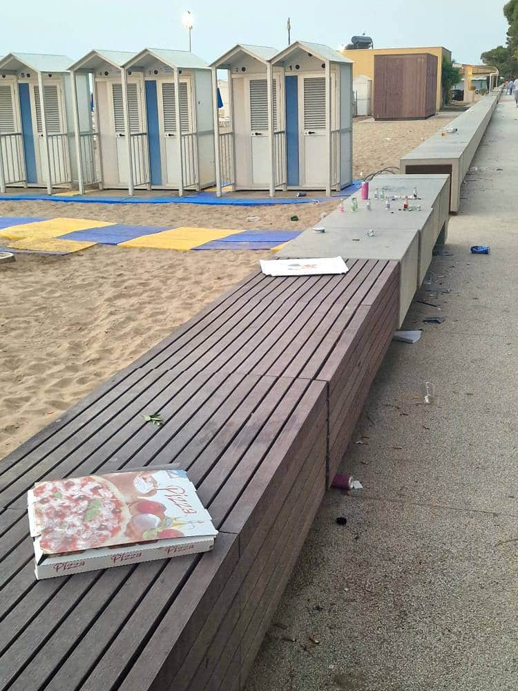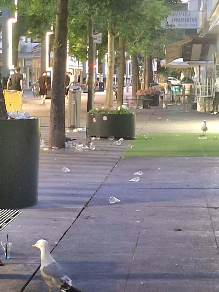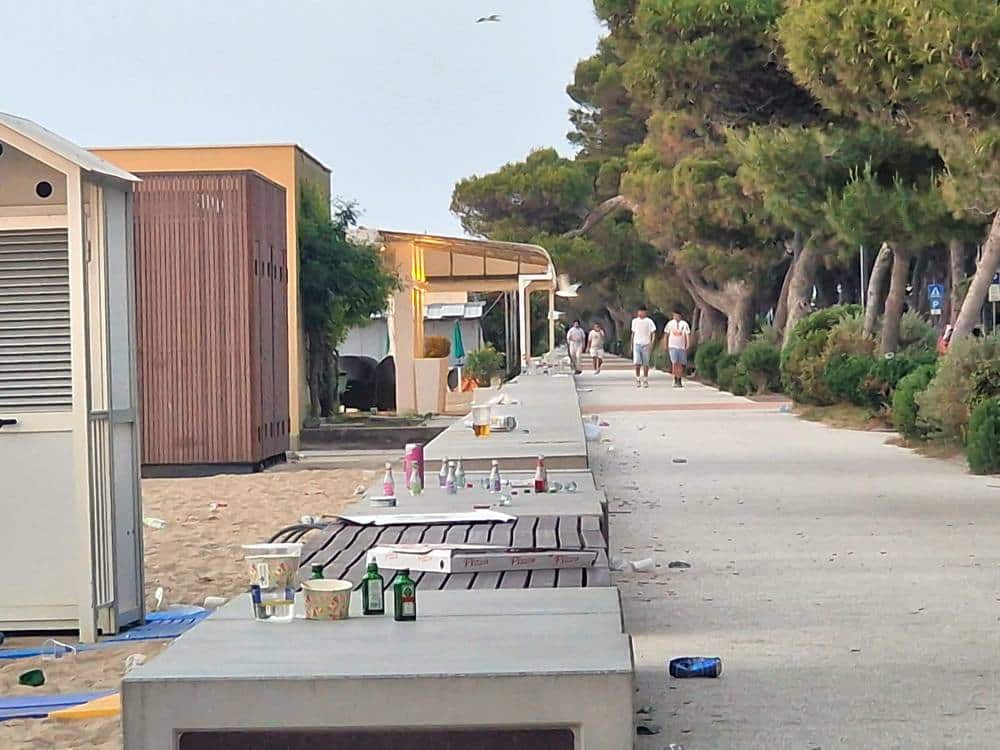 LIGNANO SABBIADORO (UDINE) – I festeggiamenti per il weekend di Pentecoste hanno lasciato il segno lungo le strade e le spiagge di Lignano Sabbiadoro. Numerosi i casi di bivacchi improvvisati, schiamazzi fino a tarda notte, giovani in evidente stato di ebbrezza e danni a spazi pubblici come le aiuole. A rendere ancor più evidente il passaggio della folla, l’abbondanza di rifiuti sparsi ovunque, tra cui piatti e bicchieri di plastica abbandonati sul lungomare e nei pressi dei locali.