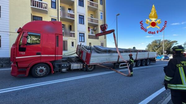 Camion bloccato davanti all'Università di Trieste: carico in bilico sulla strada - FOTO