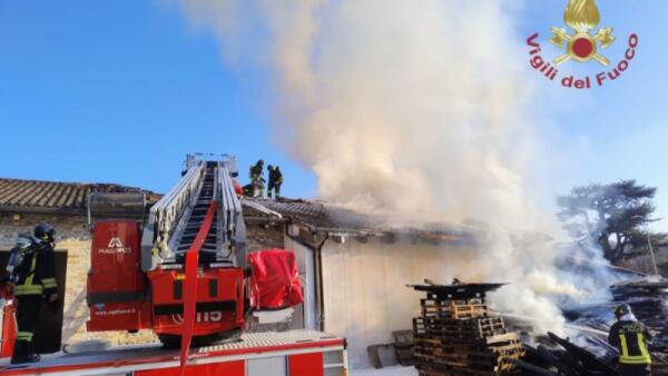 Rogo improvviso: bancali in fiamme e tetto del magazzino danneggiato