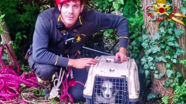 Cucciolo precipita in un dirupo di 40 metri: salvato dai Vigili del Fuoco