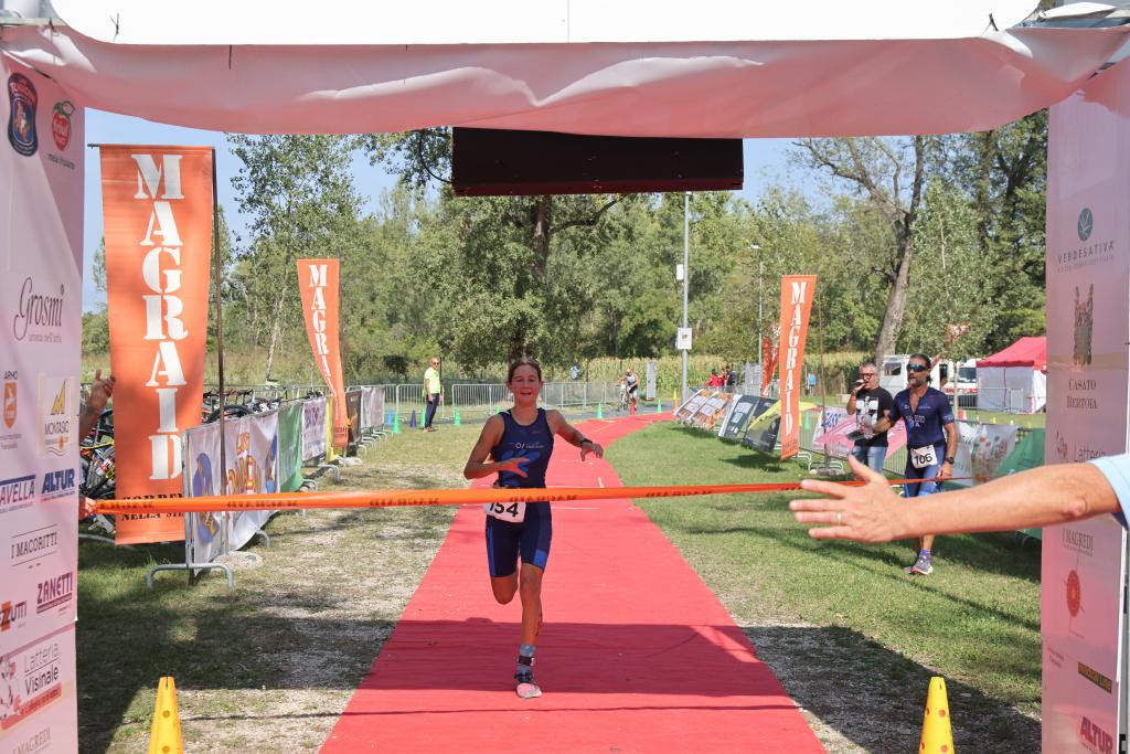 Sul fronte femminile il terzo posto è andato a Sylviane Bertuzzi (PPRTEAM, 1:01:02), il secondo a Serena Bratti (CUS Udine, 59:05) mentre il gradino più alto è stato conquistato da Susanna Nalesso del Triathlon Terraglio (55:26). È stato poi davvero emozionante l’arrivo di Aurora Dorello dell’Asd Delfino Chioggia, ultima atleta in gara, che è stata “accompagnata” a tagliare il traguardo dal primo arrivato, Massimo Cigana.