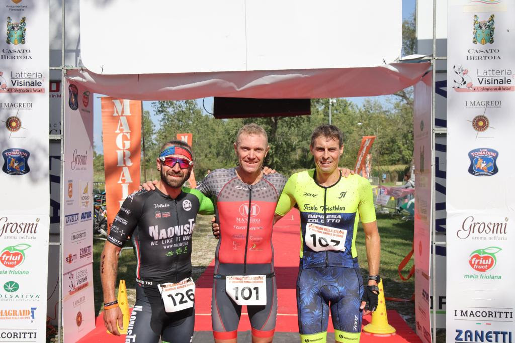 Magraid in Rosa – Memorial Paola Franzo non è stato l’unico evento che ha caratterizzato la giornata: alle 11 è infatti partito il Duathlon nella steppa – 1° Memorial Daniele De Giorgi, una gara fortemente voluta dall’A.s.d. Triathlon Team per ricordare il suo atleta prematuramente scomparso nel 2022. Le distanze previste per questo Duathlon sono state: 3 km di corsa, 10 km di mountain bike e 1,5 km di corsa. Per quanto riguarda la classifica maschile i primi tre classificati sono stati Massimo Cigana (Maniro Triathlon, 44:20), Lazzaroni Jurij (Naonis Tri, 47:14) e Prataviera Massimo (ADS Jesolo Triathlon, 47:18). Cigana, ex gregario di Pantani e con una brillante carriera ciclistica alle spalle, ha guadagnato la prima posizione, mantenuta poi fino a fine gara, proprio nella frazione centrale di mountain bike: qui ha staccato il diretto avversario con cui, nella prima parte di corsa, stava combattendo un serrato testa a testa.