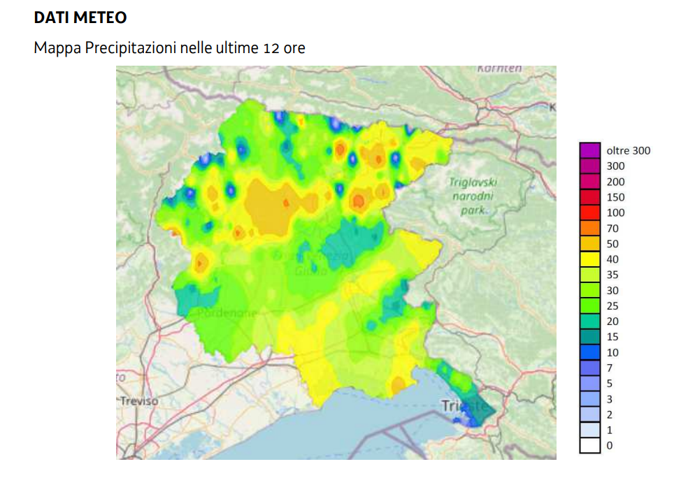 I corsi d'acqua hanno risposto alle intense precipitazioni con un significativo innalzamento dei livelli idrometrici. Il Bacino del Livenza ha visto l'idrometro di San Cassiano superare il livello di guardia già alle 03:15, raggiungendo i 3.69 metri alle 06:30. Anche il Bacino del Tagliamento e il Bacino dell’Isonzo hanno registrato aumenti, con il Fiume Vipacco a Savogna d’Isonzo che ha superato il livello di attenzione di 4.30 metri.