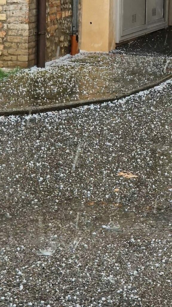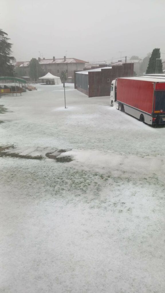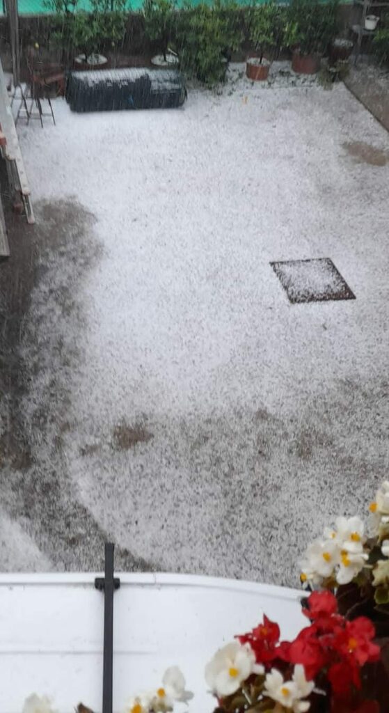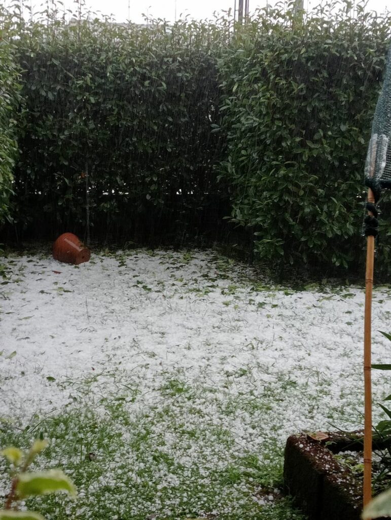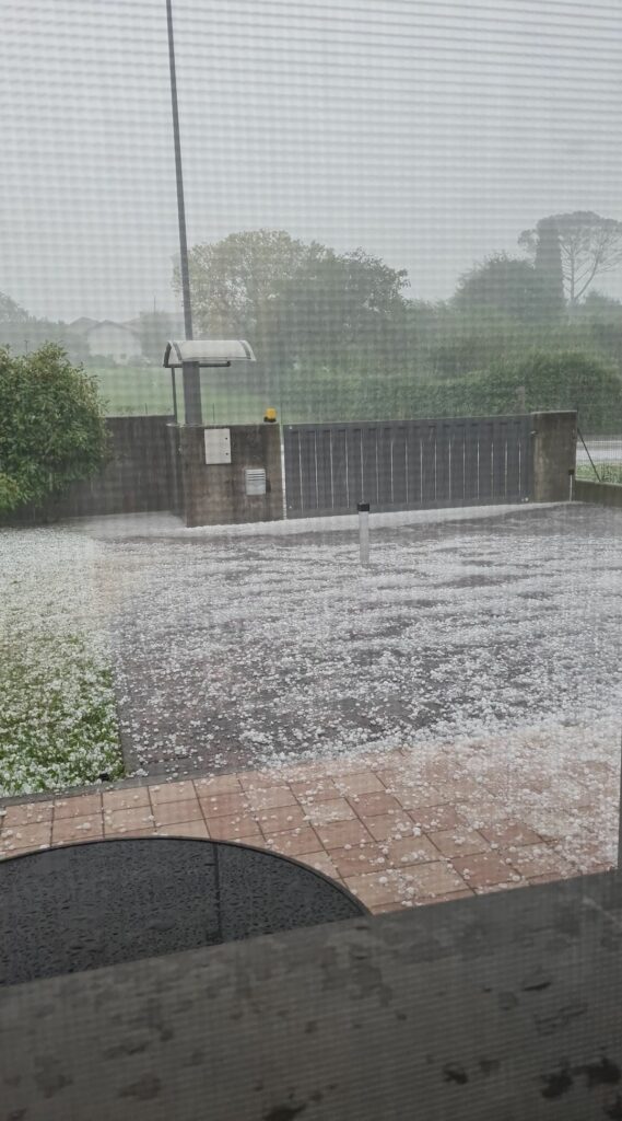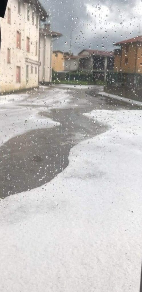 Un nubifragio alle 17 circa ha colpito Reana del Rojale (UD), Tricesimo e molti altri comuni con strade trasformate in torrenti e cortili imbiancati dalla grandine.