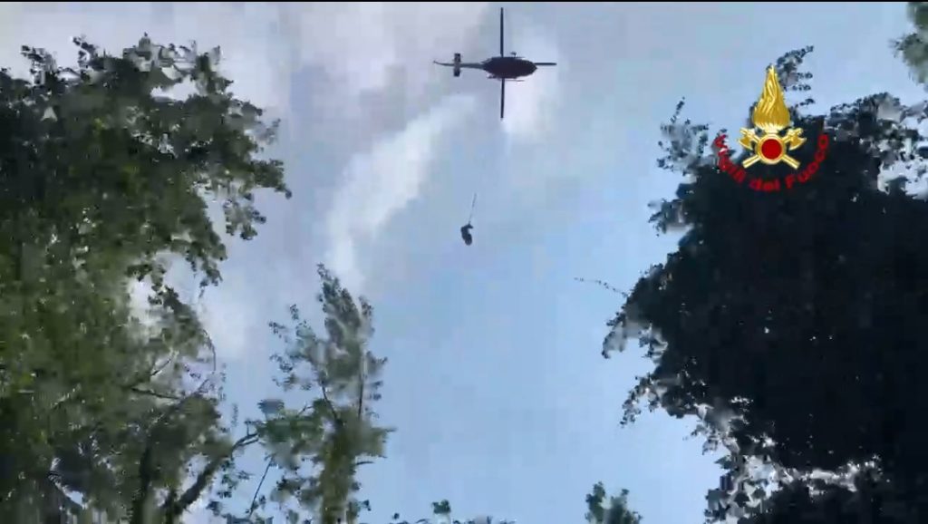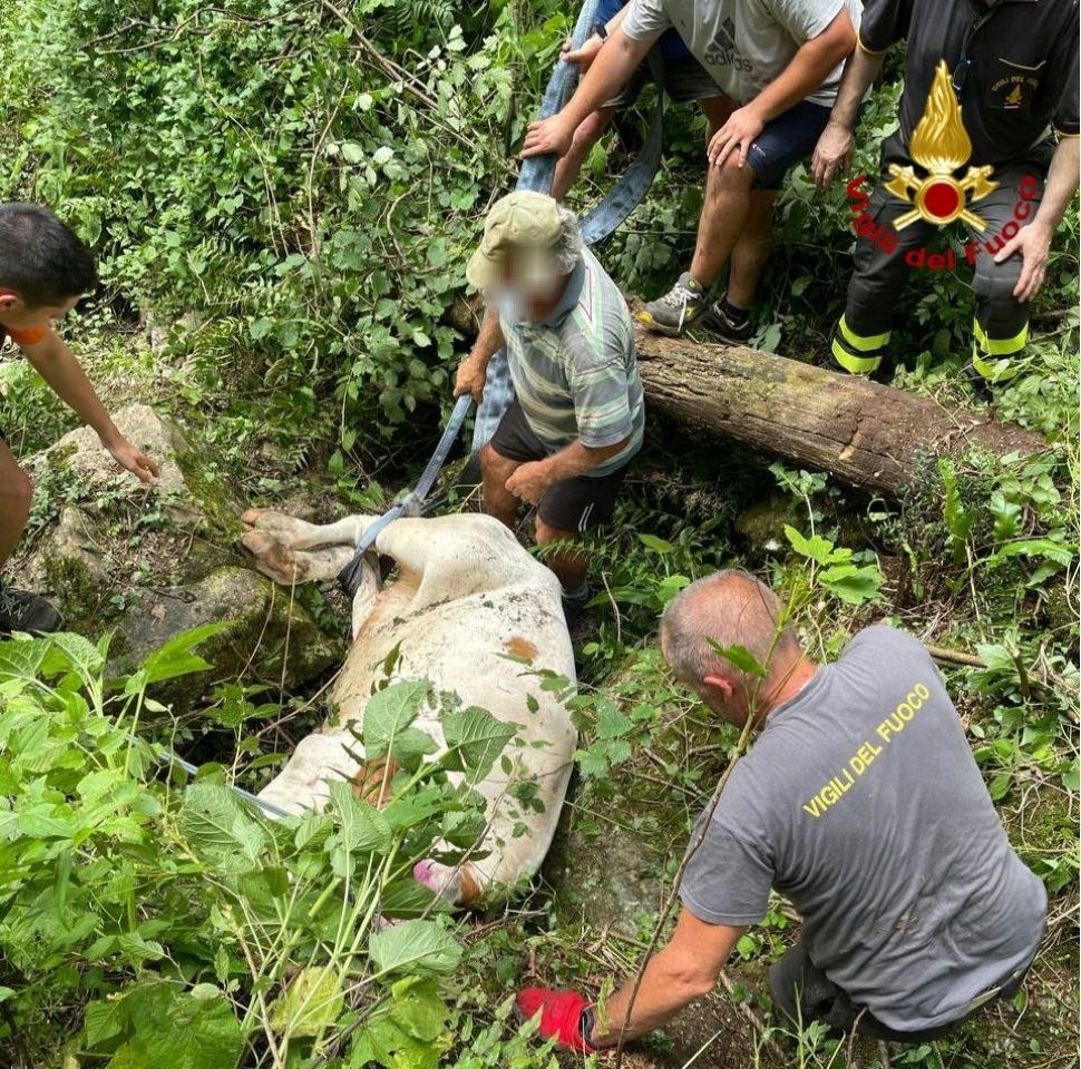 I pompieri, giunti sul posto attraverso la fitta vegetazione, rimuovevano le rocce che impedivano alla vacca di muoversi: probabilmente a causa della stanchezza i tentativi di far risalire il sentiero all'animale risultavano vani e si rendeva necessario il recupero con l'elicottero.
