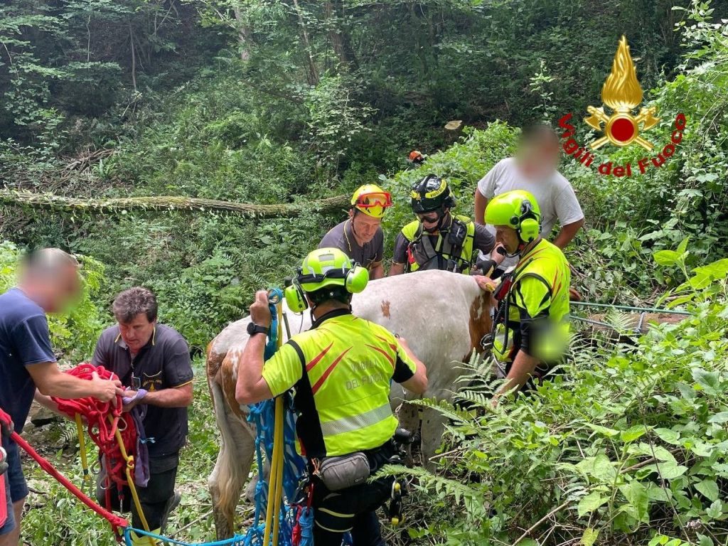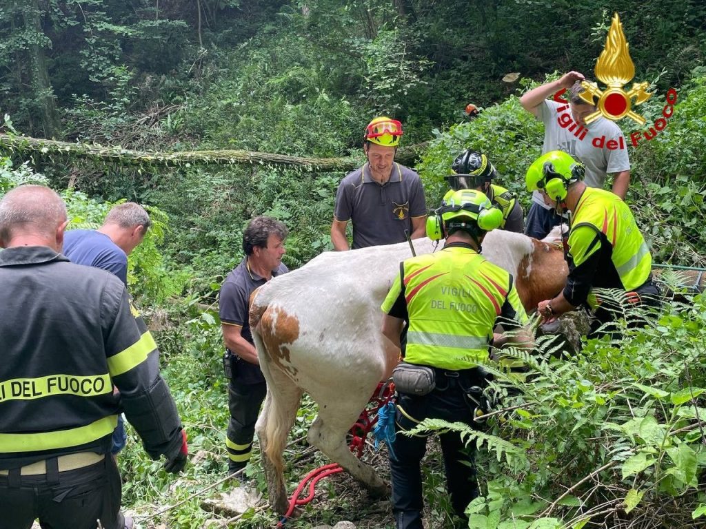 Mucca caduta e dispersa da qualche giorno: salvata dai pompieri