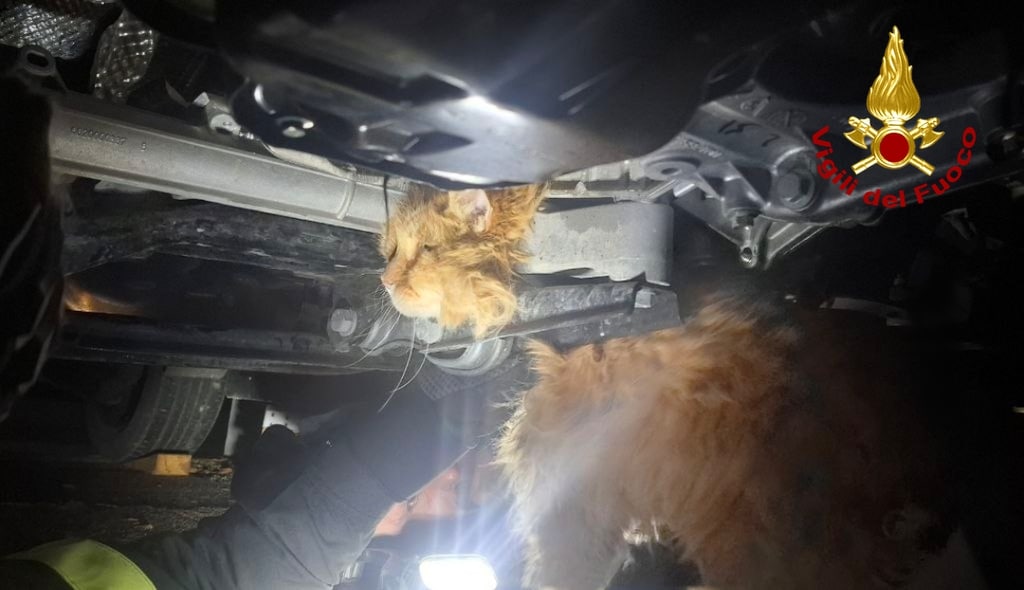 Azzano Decimo, gatto incastrato nel motore di un'auto: salvato dai vigili del fuoco
