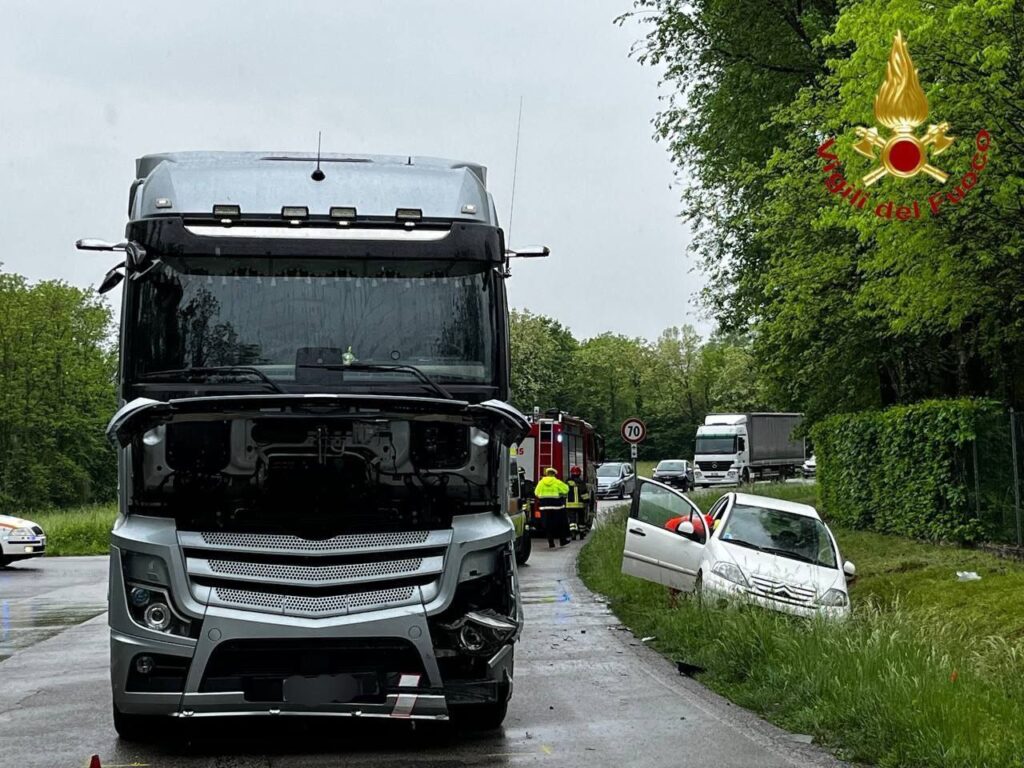 Scontro tra auto e camion ad Aviano, soccorse due persone rimaste ferite