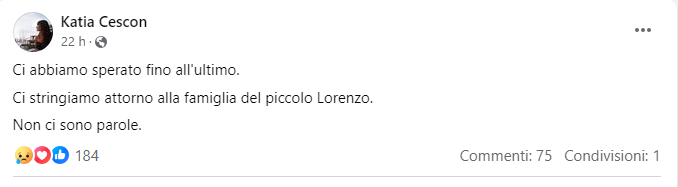 PRATA è in lutto per la tragica scomparsa di Lorenzo Surian, un bambino di soli 11 anni che ha perso la vita dopo quattro giorni di agonia. La notizia è stata diffusa dalla sindaca Katia Cescon tramite un commosso post su Facebook, in cui ha espresso la sua vicinanza alla famiglia del piccolo Lorenzo: «Ci abbiamo sperato fino all'ultimo. Ci stringiamo attorno alla famiglia del piccolo. Non ci sono parole». Questo messaggio ha segnato la fine delle speranze per tutti coloro che, fino a ieri sera, giorno della sua morte, nutrivano la speranza di una sua ripresa.