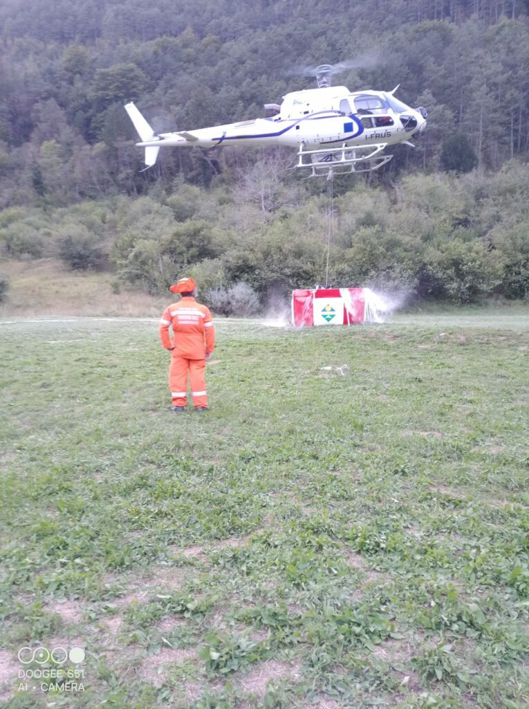 Era decollato l'elicottero della Protezione Civile del Friuli Venezia Giulia che aveva pescato in un vascone allestito nella zona, alimentato dall'acqua dell'Arzino.